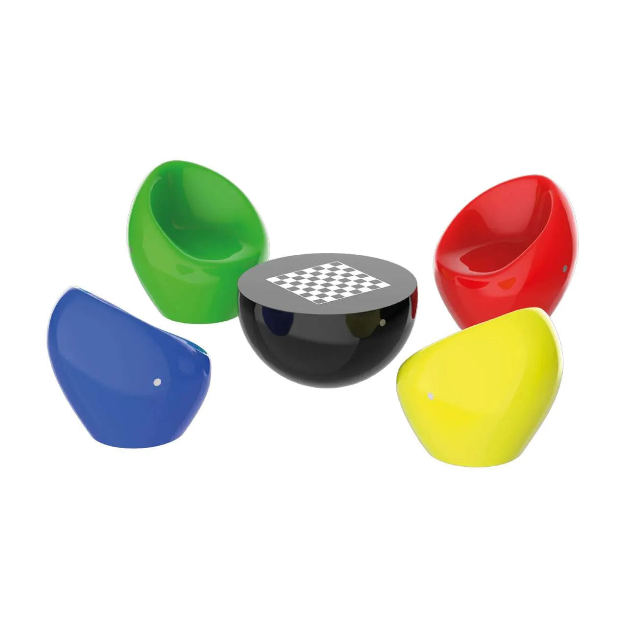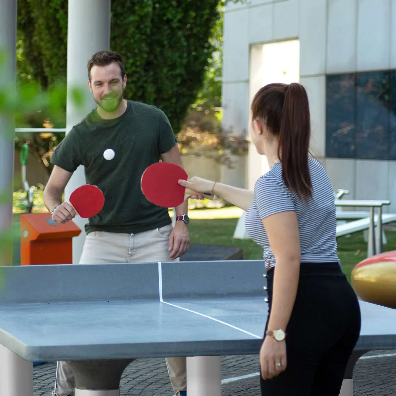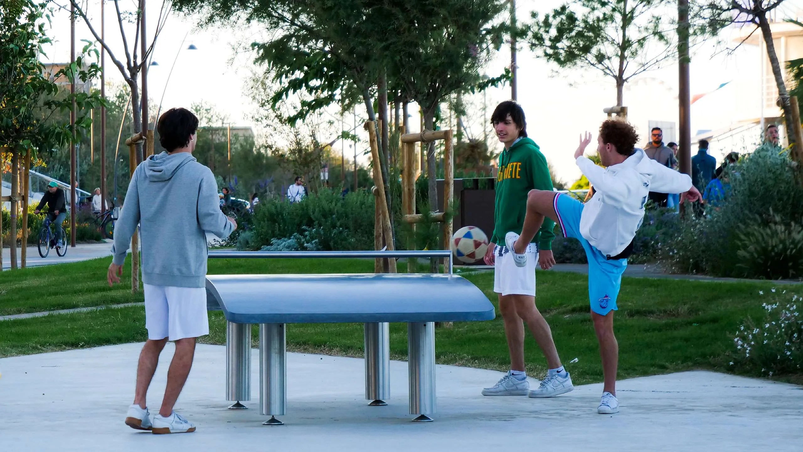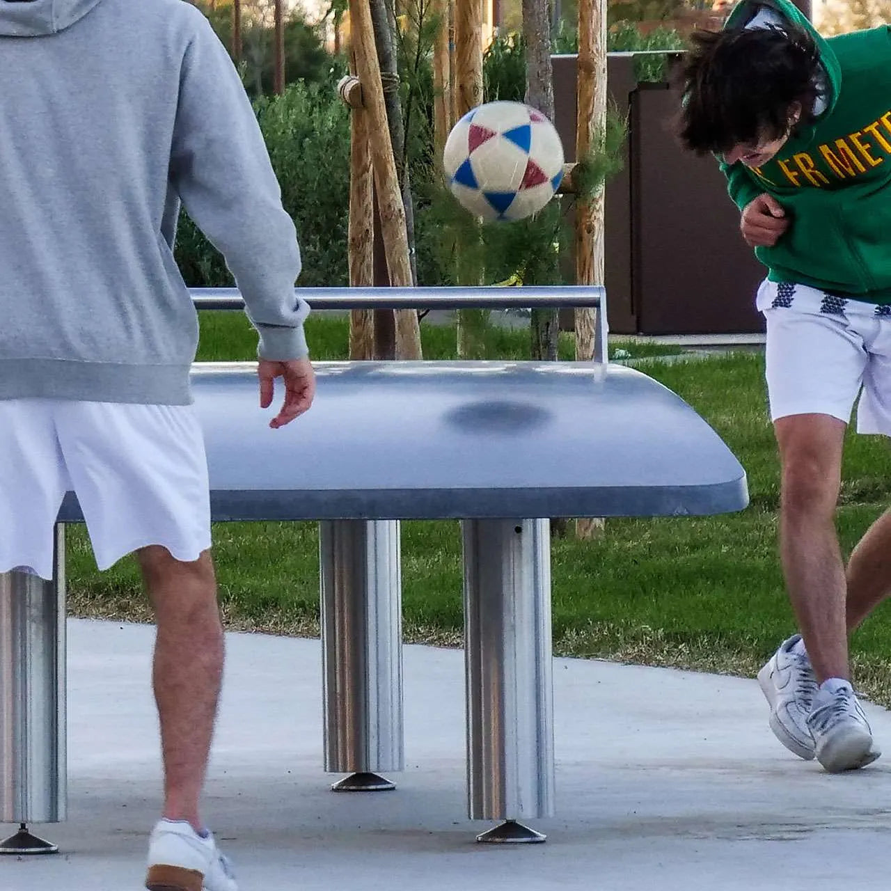 MyEquilibria offers a unique approach to enhancing social engagement and mental well-being by encouraging people to step away from technology and connect in person outdoors. Their configurations include a teqball table, merging football and table tennis, a classic ping pong table for active play, and a relaxed outdoor "lounge" setting with seating and tables for chess or checkers. These diverse options cater to various interests and provide opportunities for physical activity, strategic thinking, and social interaction, promoting meaningful connections and well- being away from screens.