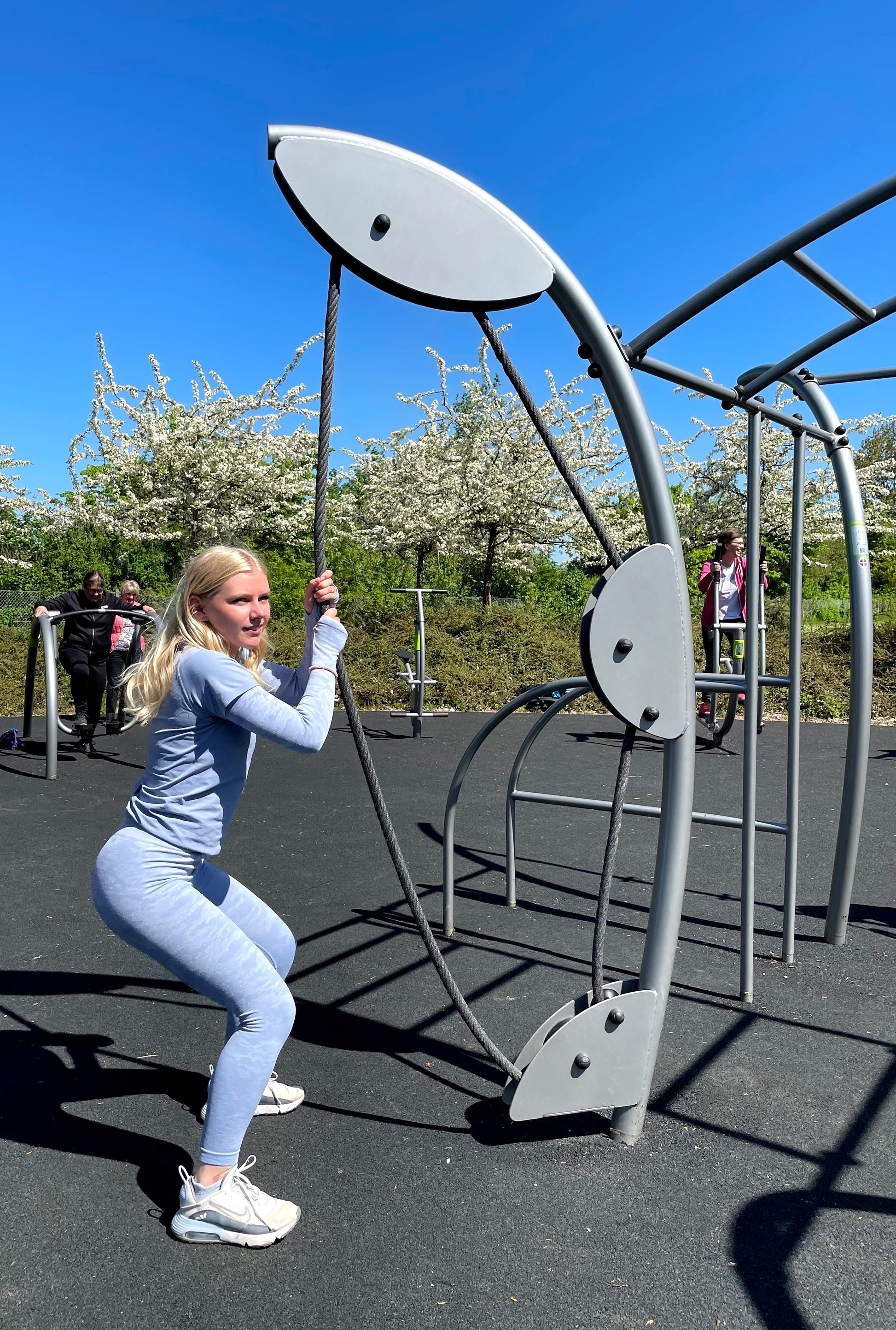 With the endless rope outdoor fitness station you can strengthen your body awareness, muscle mass and cardio level. By pulling the endless rope up and down you improve the strength in your core and upper body: shoulders, chest and arms.